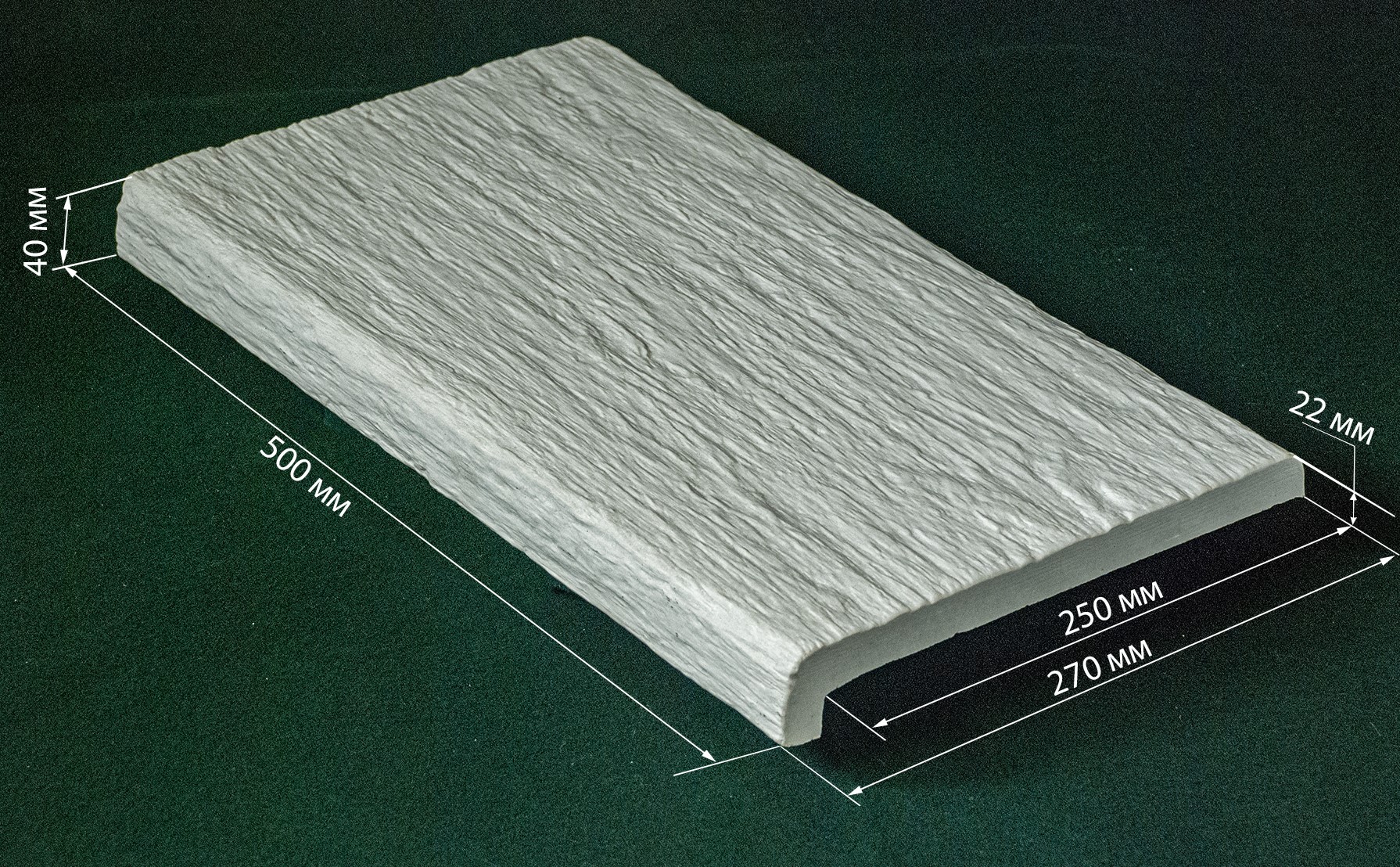 Штучний камінь (бетон: кварцит світлий, кварцевий пісок, цемент ДСТУ Б В,2,7-257:2011 СЕМ I 52.5N білий, хімічні добавки для покращення властивостей виробу) |